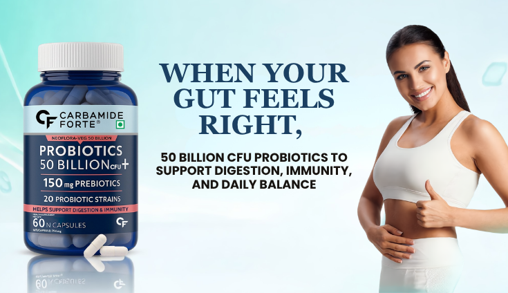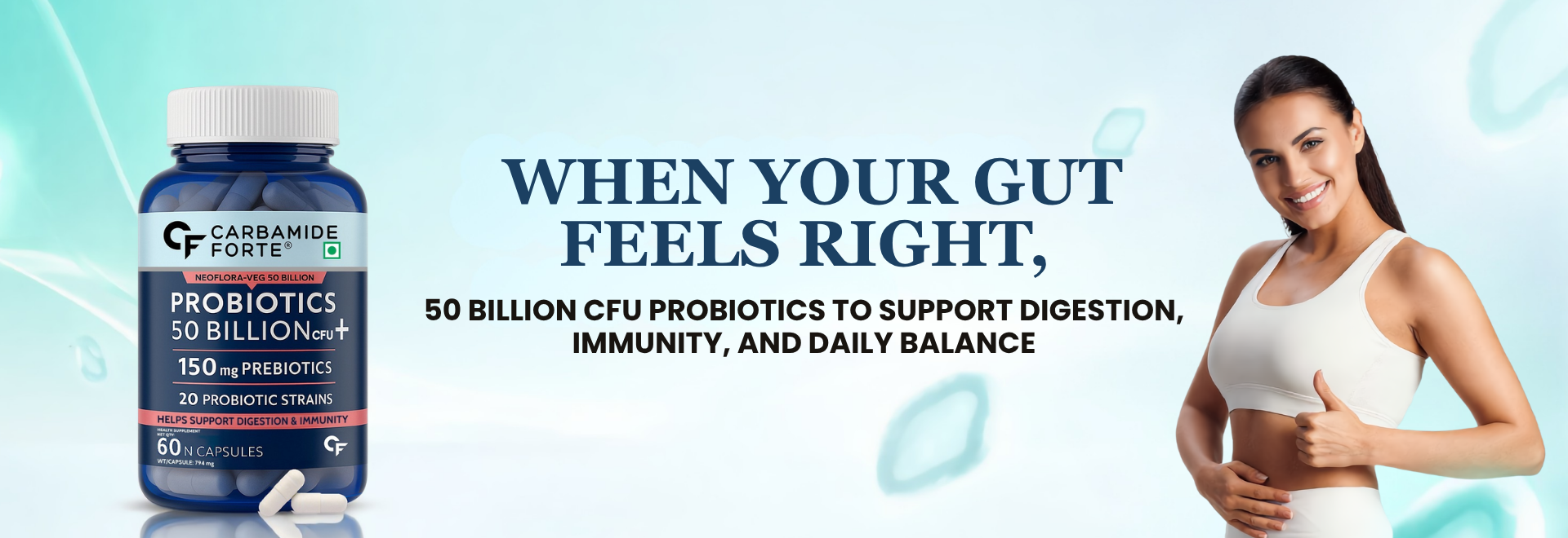Carbamide Forte Probiotics Supplement 30 Billion CFU for Women & Men | Probiotics for Gut Health Supplements | Support Digestion & Immunity | Gut Health Probiotics – 60 Veg Capsules