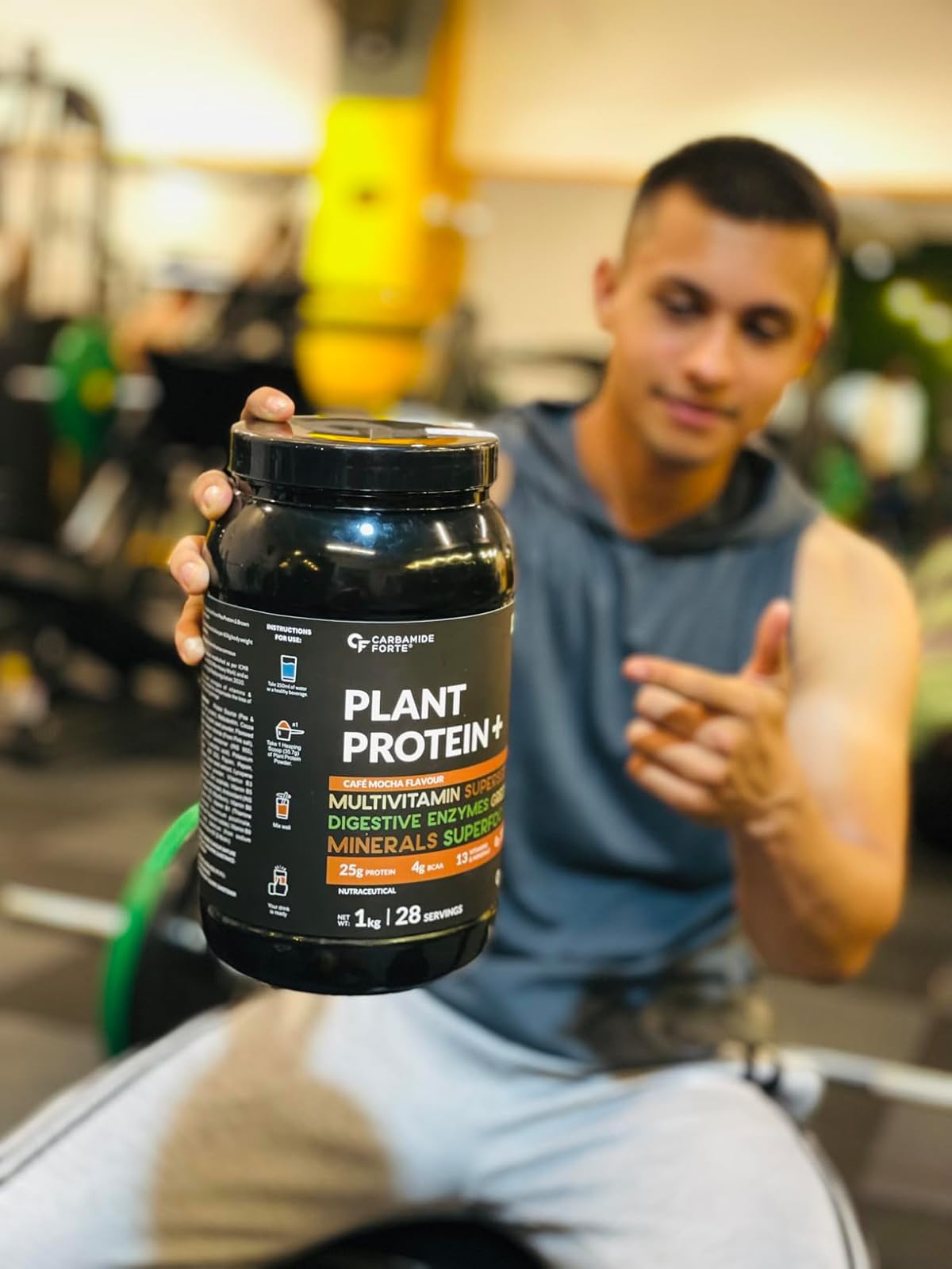 Carbamide Forte Vegan Protein Powder - Plant Based Protein Powder with Multivitamin, Minerals, Superfoods, Pea Protein, Digestive Enzymes | Plant Protein Powder Cafe Mocha Flavour - 1Kg