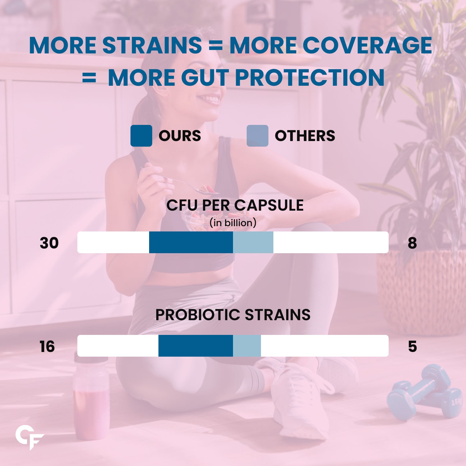 ✔ POWERFUL 30 BILLION CFU & 16 STRAINS IN PROBIOTICS FOR WOMEN AND MEN: Our probiotic capsules for women and men deliver 30 billion CFU with 16 carefully chosen strains, making them one of the most potent probiotics supplements available. These probiotics tablets for digestive health are specially formulated to support gut health, boost immunity, and improve overall digestion. With this high potency, our probiotics supplement ensures that your body receives the maximum benefits for gut health and overall well-being.