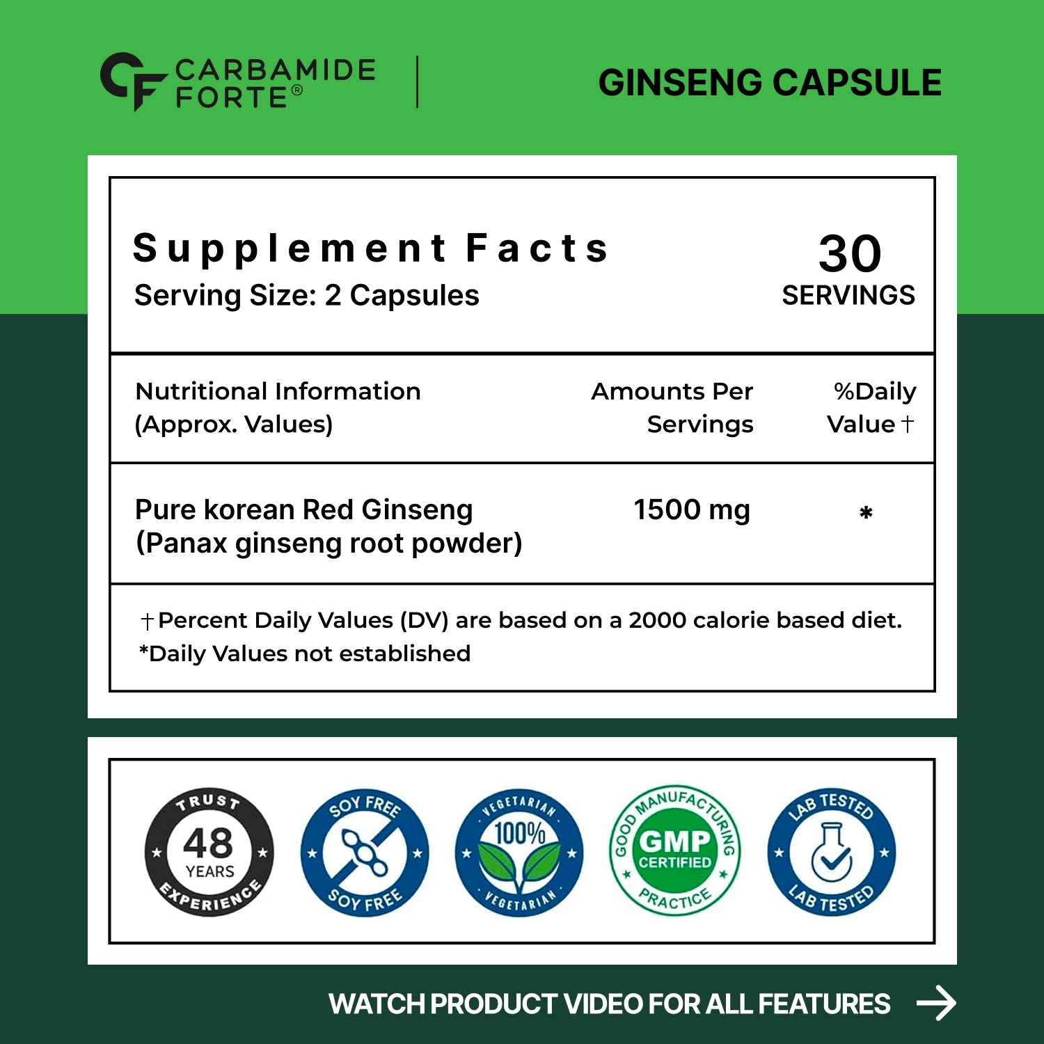 Powerful 1500 mg Panax Korean Red Ginseng Extract: